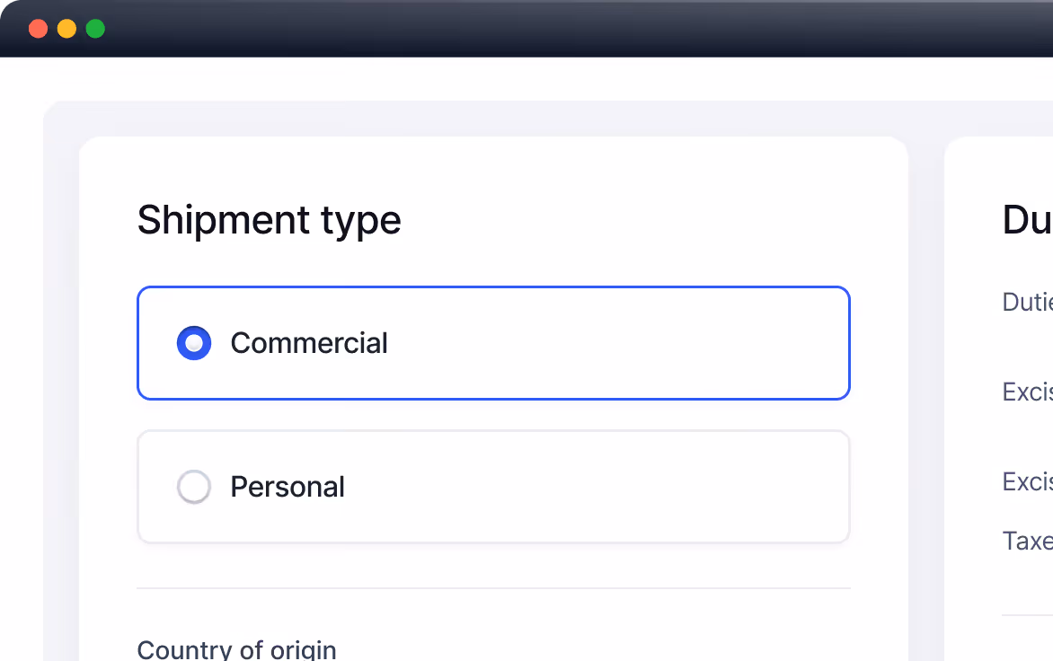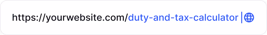 Select the Duty & Tax calculator app, enter your domain, and copy the provided HTML embed code.